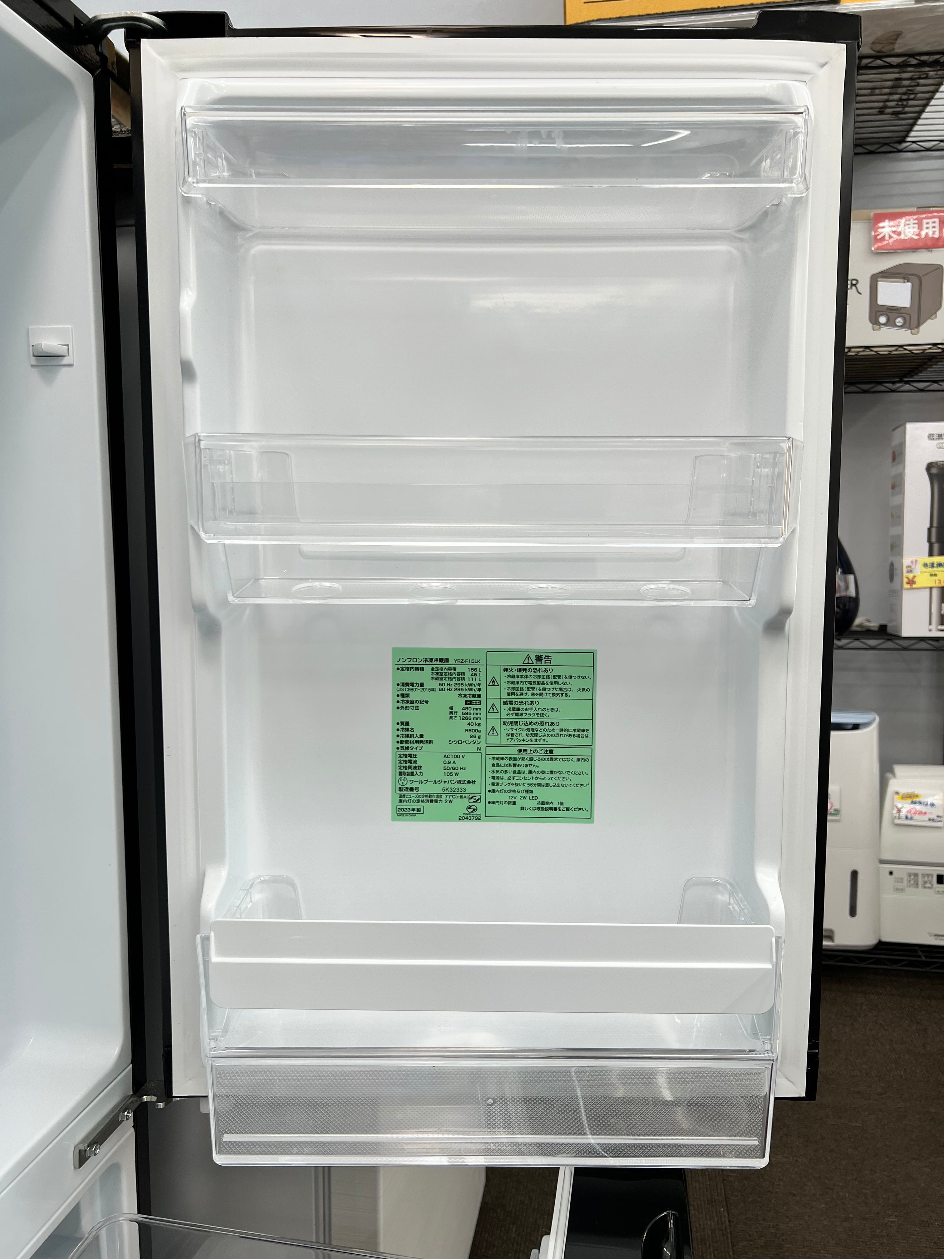 ★東京都内 配送設置無料/店舗直渡し可(有料にて遠方配送可)★2023年製★ REFAGE【 2ドア冷蔵庫 156L 右開き 】YRZ-F15LK ブラック