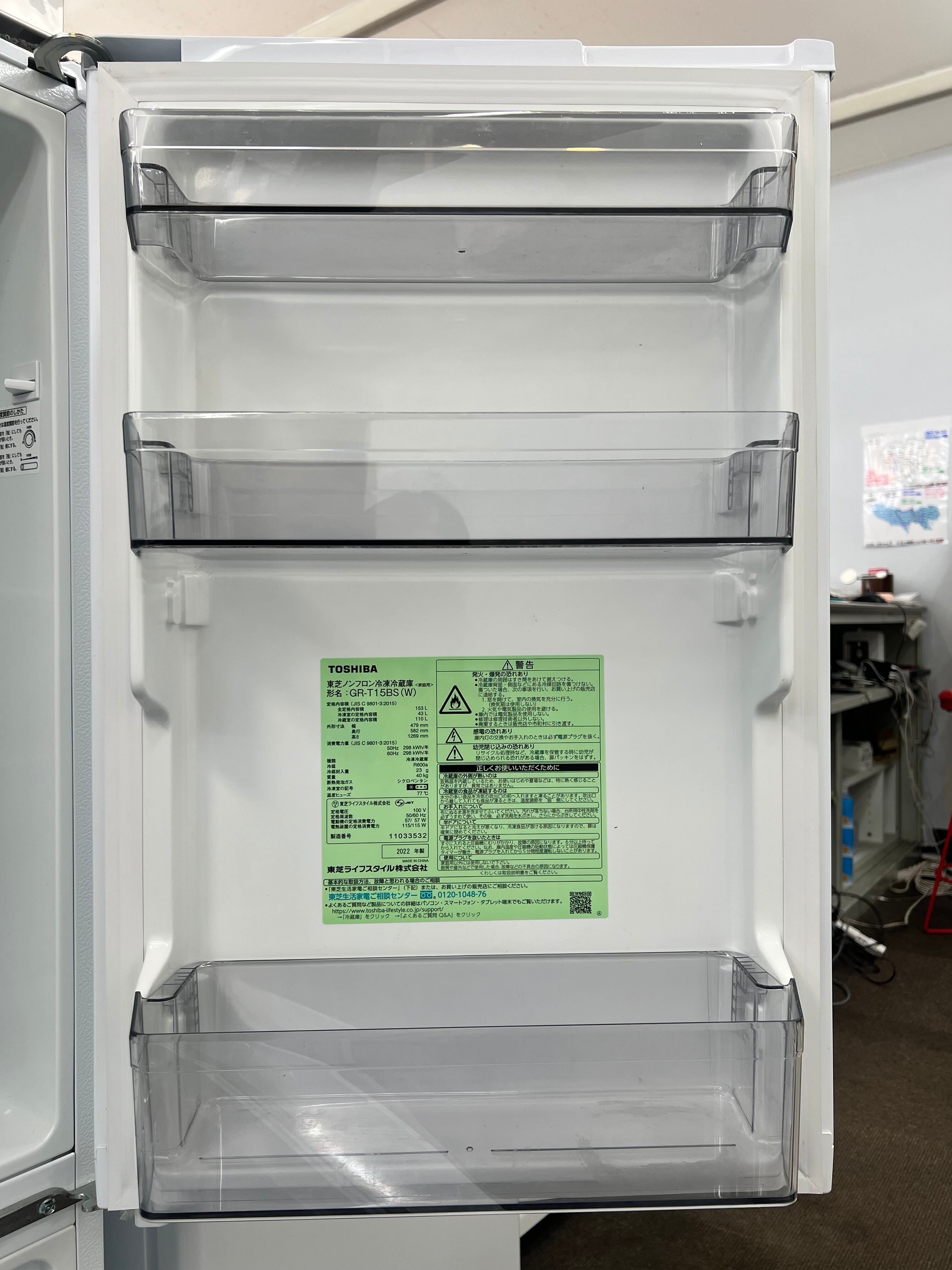 ★東京都内 配送設置無料/店舗直渡し可(有料にて遠方配送可) ★2022年製★ 東芝/TOSHIBA【 冷蔵庫 2ドア 右開き 153L 】GR-T15BS-W セミマットホワイト