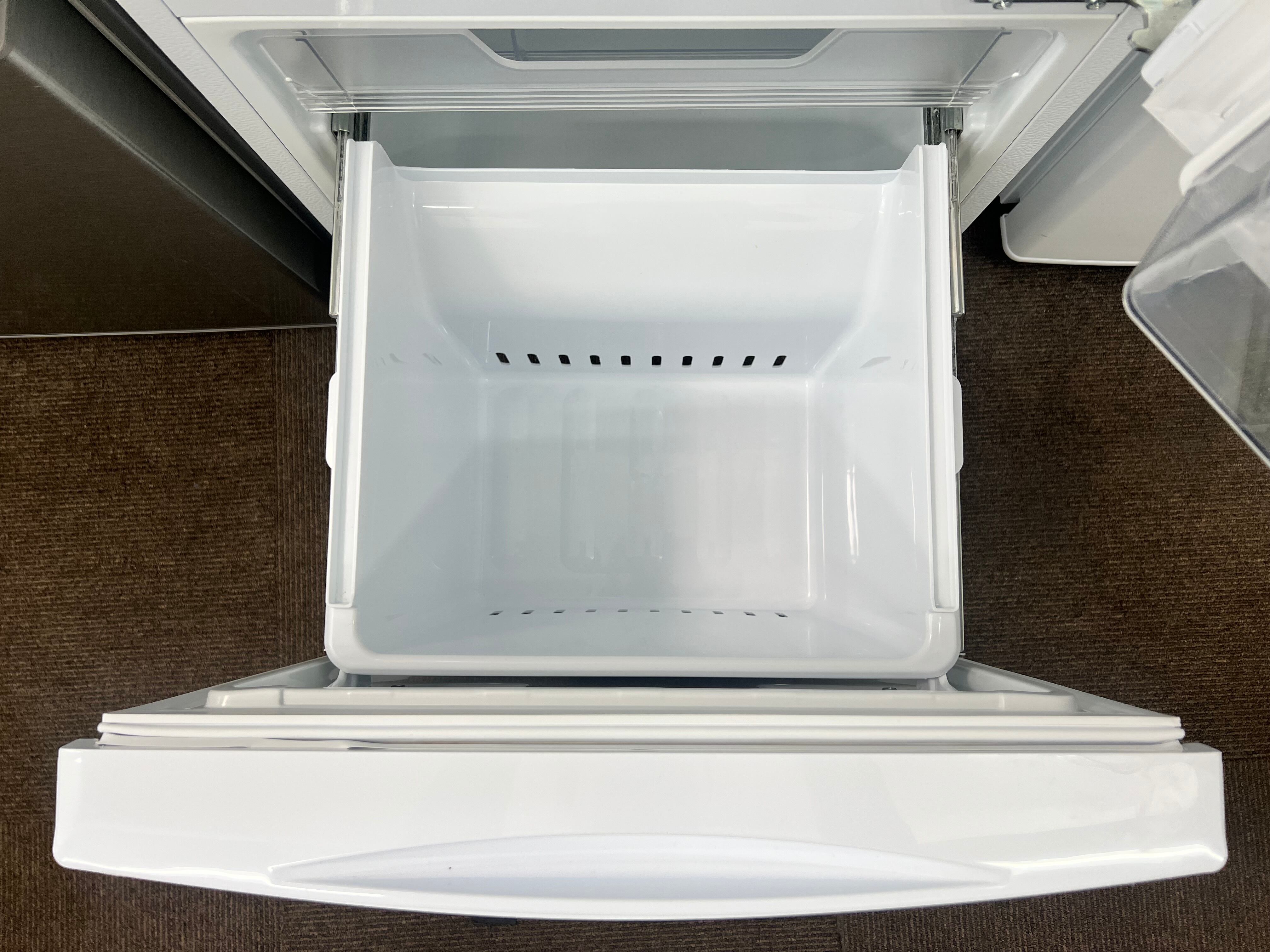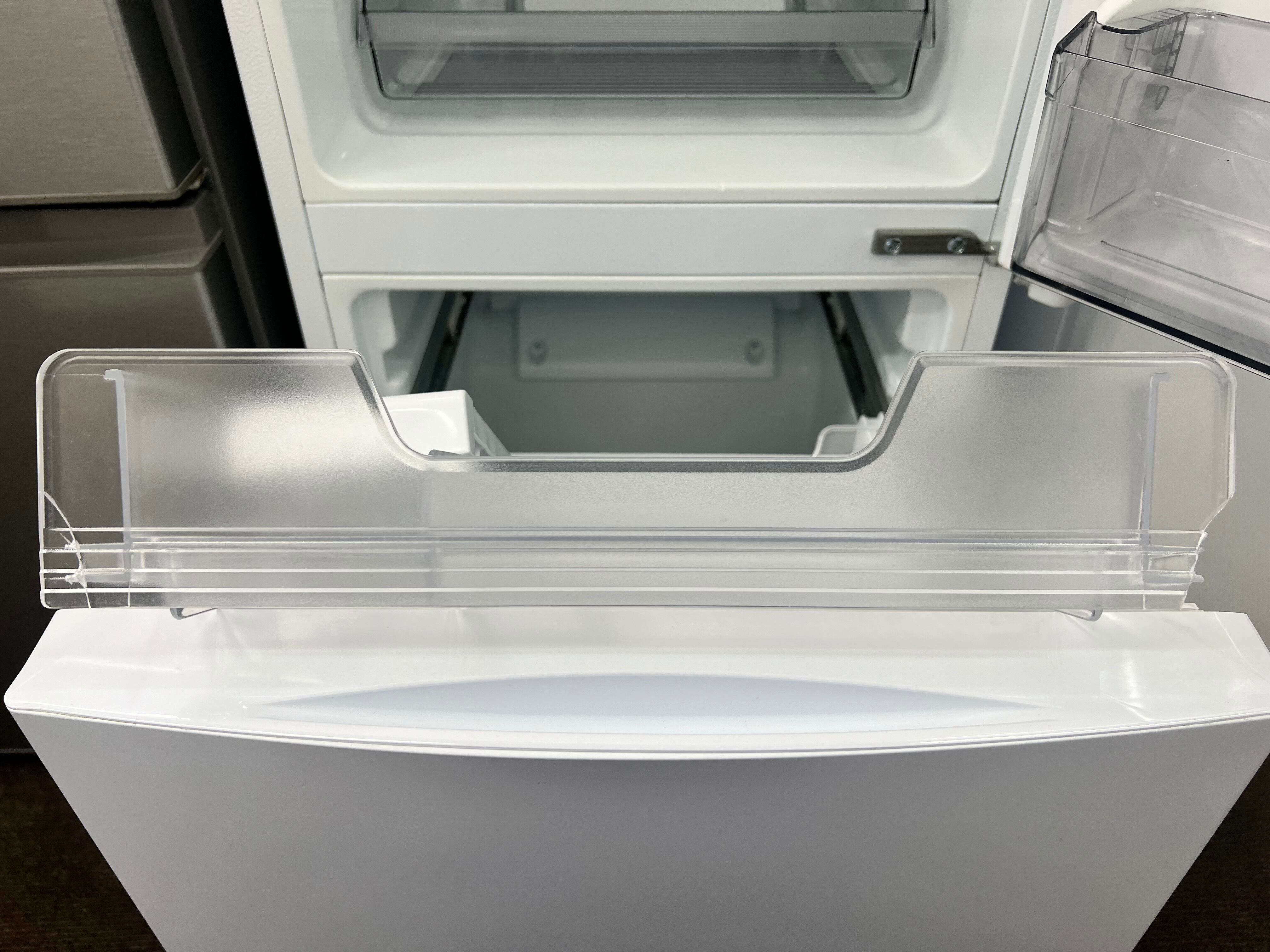 傷や微細な擦れクスミなどの使用感があり、冷凍引き出しの両サイドに割れがございますが、まだまだお使いいただけるお品物です。